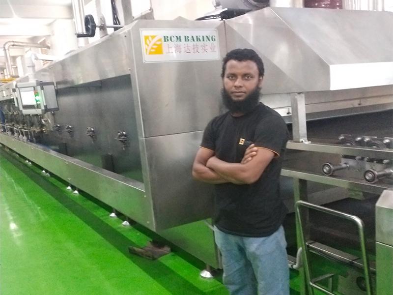 通过长达一个月对我司各机器优势与特别设计之后,我们顺利拿下了孟加拉一个大客户的1.5米宽的饼干生产线。